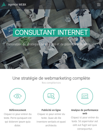 Ce template est adapté aux sociétés de conseil et organismes de formation. Une riche bibliothèque d'icônes est à votre disposition pour démarquer votre site web. N'oubliez pas de publier les avis de vos clients satisfaits.