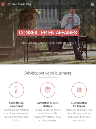 Ce template est idéal pour les sociétés de conseils et les consultants. Son design harmonieux et sa structure claire sont parfaits pour la vente et la présentation de vos services haut de gamme. N'oubliez pas d'intégrer des témoignages clients.