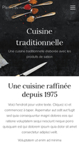 Ce template est parfait pour tous les restaurants chic, les cafés et les bars à vin. Présentez vos plats et vos menus de manière attractive. N'oubliez pas d'ajouter votre adresse, les horaires d'ouverture et un formulaire de réservation.
