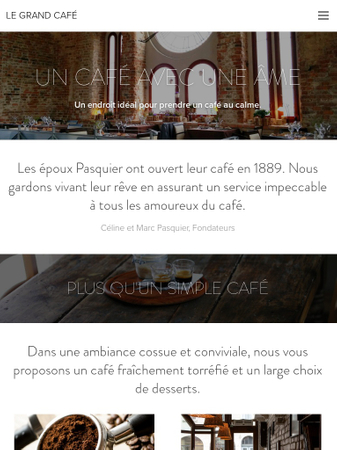 Ce modèle est dédié aux bistros, aux bars à vin et aux cafés. Présentez vos menus d'une manière structurée et n'oubliez pas de les accompagner des photos qui donneront à vos visiteurs envie d'aller dîner dans votre restaurant.