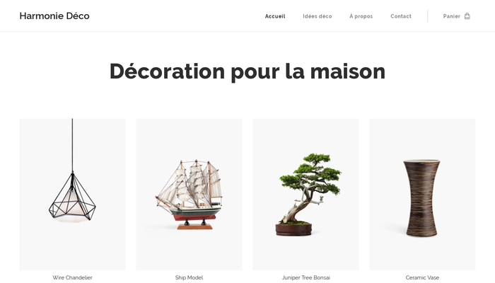 Vous vous apprêtez à vous lancer et vendre vos produits faits main pour la décoration d'intérieur ? Avec ce template harmonieux, vous allez pouvoir ouvrir un site boutique qui cartonne en quelques clics. Présentez vos produits originaux sur la page d'accueil au travers d'une galerie photos pour attirer et fidéliser les clients !