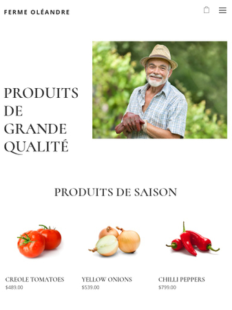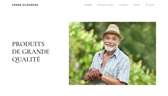 Ce template répond aux besoins des agriculteurs qui souhaitent vendre leurs produits en ligne. Il vous suffit d'ajouter vos coordonnées, des photos de vos produits et de décrire l'histoire de votre ferme ou verger. Donnez aux clients l'envie d'acheter vos fruits ou légumes tout de suite !