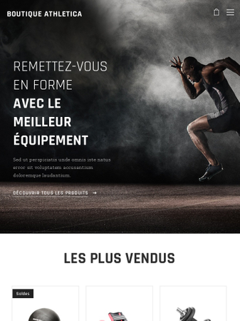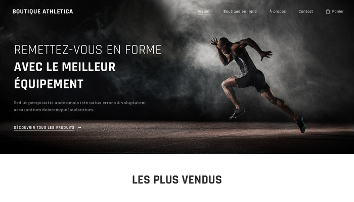 Idéal pour proposer du matériel de musculation, des vêtements de sport ou des compléments alimentaires, ce template élégant va séduire vos clients. Rédigez une bonne description pour chaque produit et présentez votre entreprise. Gagnez la confiance des visiteurs afin de les transformer en clients !