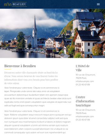Présentez toutes les informations importantes sur votre ville ou municipalité ! Il est possible de répartir le contenu en plusieurs rubriques désignés aux touristes et aux habitants. Le menu vertical vous permettra de créer un site web complet, où les visiteurs s'orientent facilement.