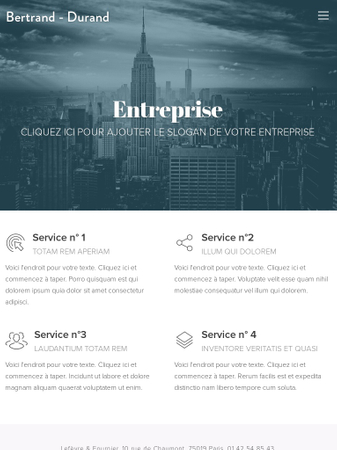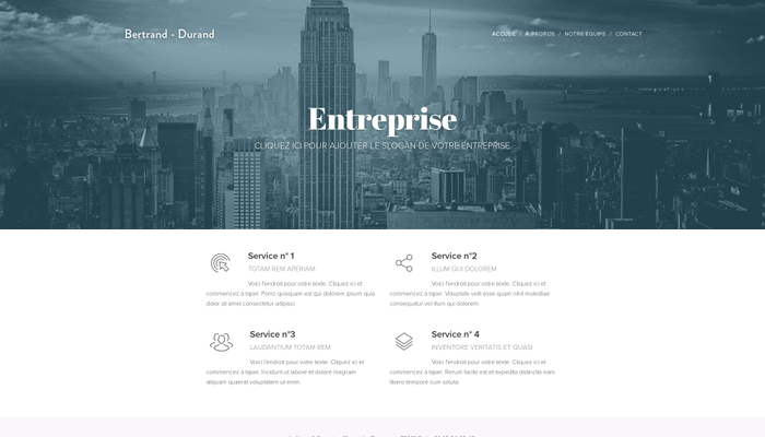 Le design clair et épuré, prêt à tout type d'entreprise que vous souhaitez mettre en ligne. Présentez vos services sur la page d'accueil et dites à vos clients ce qu'ils veulent savoir : pourquoi choisir votre entreprise ? Personnalisez le contenu de votre site web selon vos besoins et faites briller votre entreprise.