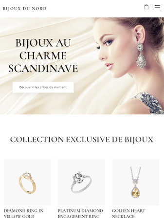 Faites briller vos bijoux de luxe avec ce template épuré et élégant. Impressionnez vos clients avec des photos de très bonne qualité et un processus d'achat hyper facile.