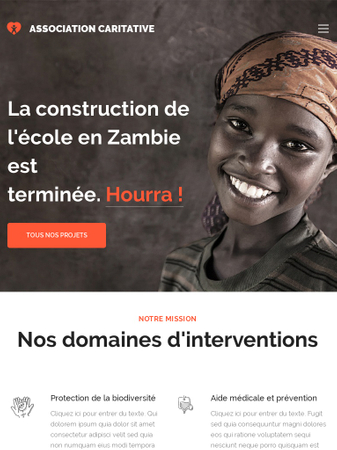 Ce template éblouissant pour les associations caritatives et les organismes sans but lucratif vous aidera à recruter vos bénévoles et collecter les dons. Montrez à vos visiteurs comment ils peuvent vous aider. Parlez de vos campagnes solidaires. Décrivez votre mission. Faites participer les gens en ligne via votre site web accrocheur et changez le monde.
