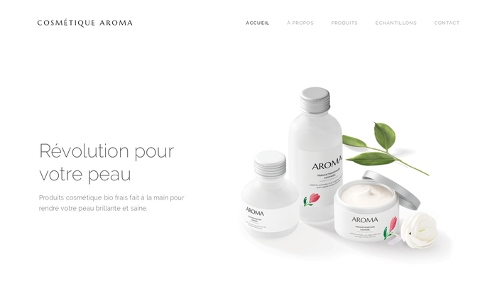 Ce thème minimaliste est parfait pour présenter votre marque de cosmétique ou vos produits artisanaux. Son fond blanc fera ressortir vos produits de beauté et un formulaire de commande vous facilitera la communication avec vos clients.