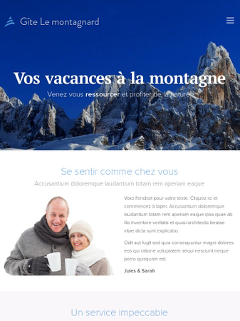 Ce template sera parfait pour votre hôtel, gîte et chalet. Impressionnez vos clients en décrivant les beautés de la nature qui entourent votre établissement et présentez vos chambres confortablement équipées.