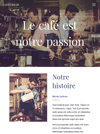Utilisez ce modèle élégant pour créer un site web pour cafés, bars à vin, restaurants et bistrots. Ajoutez vos coordonnées dans le pied de page pour que vos clients puissent vous trouver facilement.
